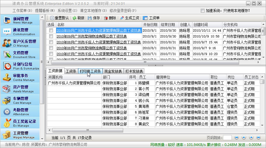 OA | 主界面 | 审批事务 | 工资管理 |